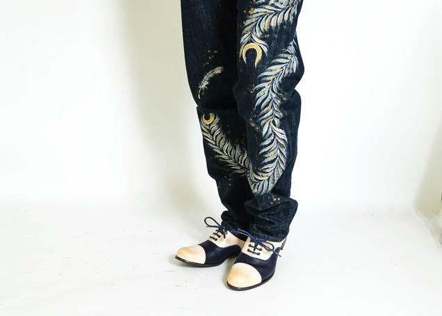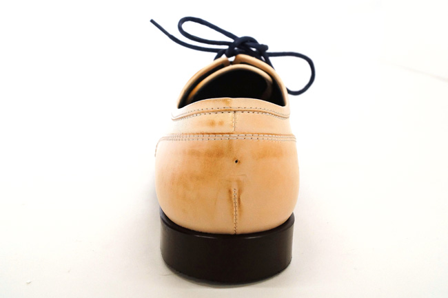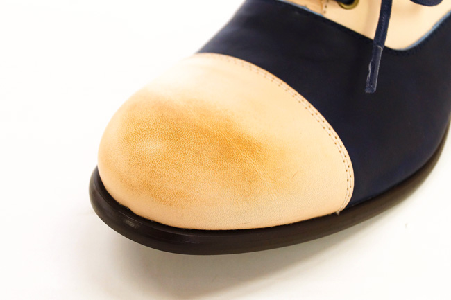 アッパー(甲部分)に焦がし加工を施し、アンティーク感を出しました。
