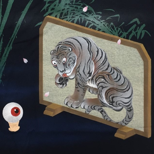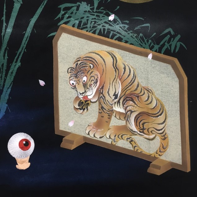 屏風の虎を伊藤若冲の猛虎図にして禅の世界感を演出し上品な大人の