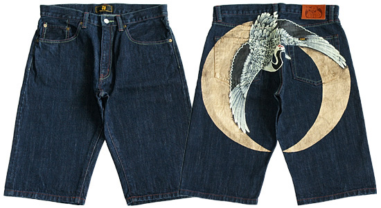 和柄ハーフパンツ「鶴」