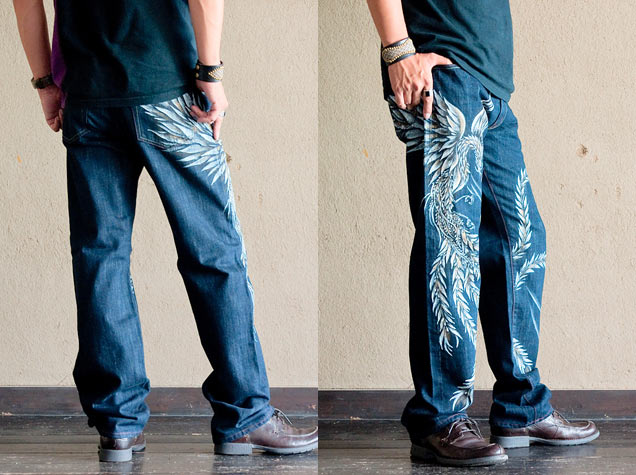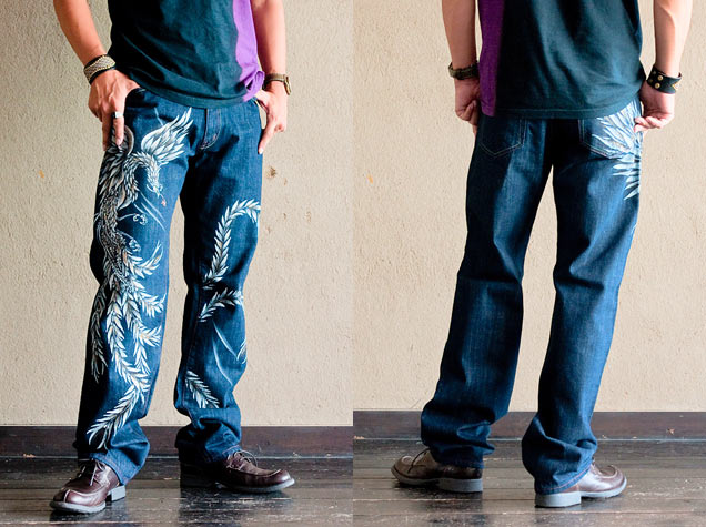 和柄ジーンズ「華喰鳳凰」
