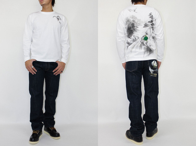 右のバックポケットにパンダを手描き。これまでの禅と違い、柄を小さくシンプルに仕上げているので比較的穿きやすい一本に