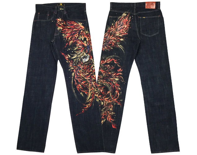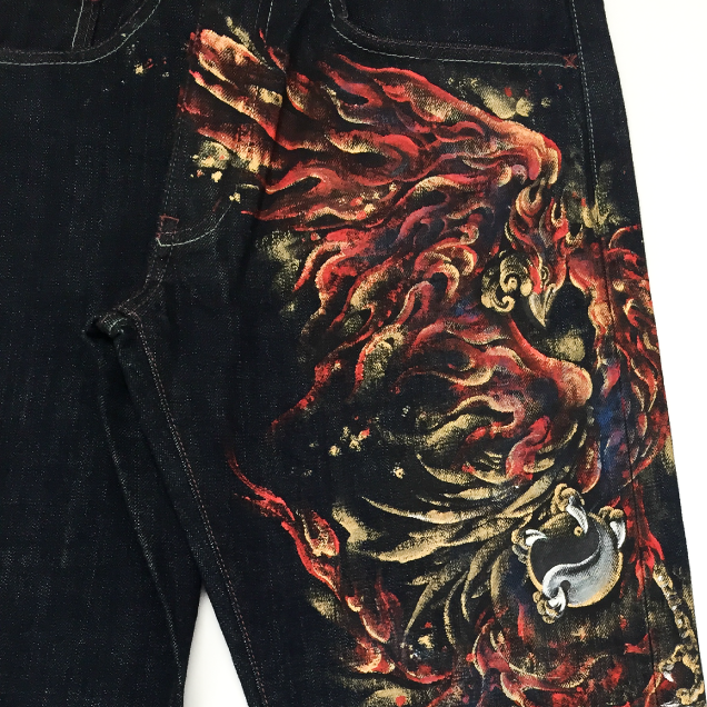 手描きジーンズ「朱雀」
