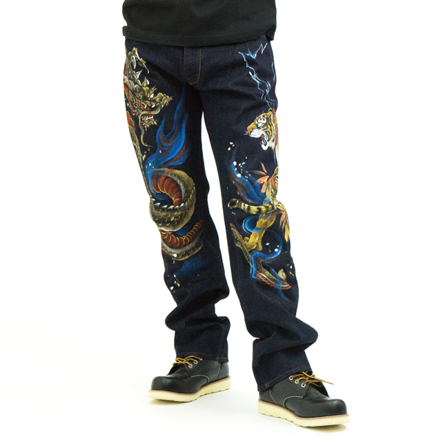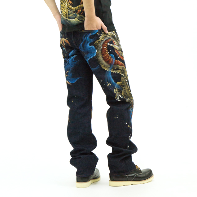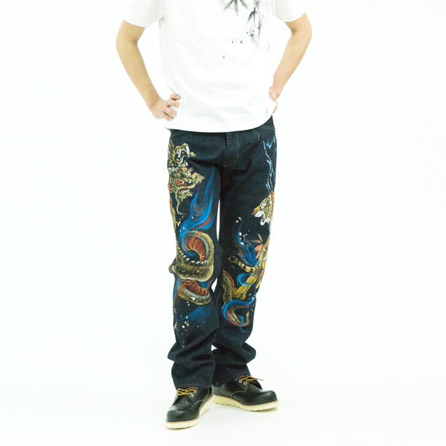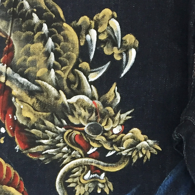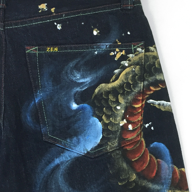 和柄手描きジーンズ「独眼竜×傾奇者」