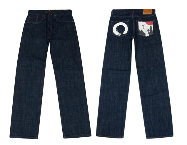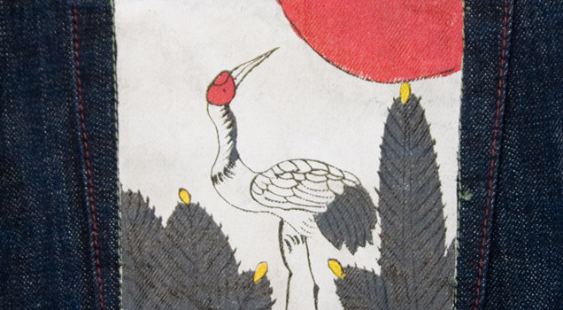 和柄ジーンズ 花札「1月 / 松に鶴」