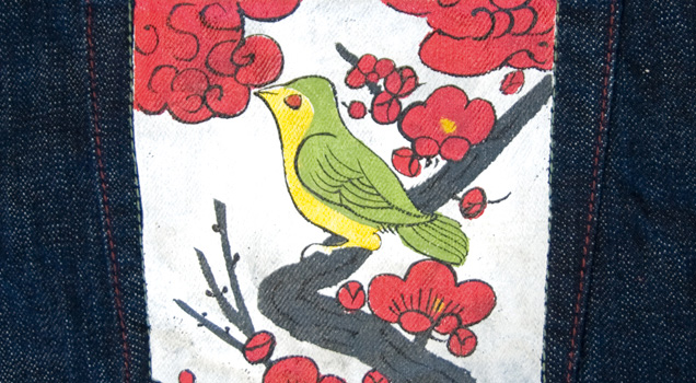 和柄ジーンズ 花札「2月 / 梅にうぐいす」