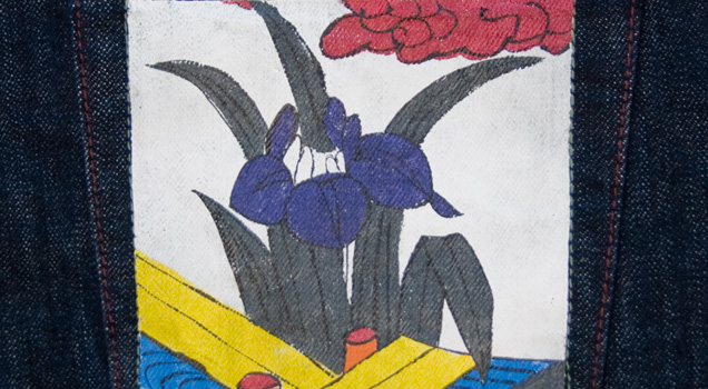 和柄ジーンズ 花札「5月 / 菖蒲に八ツ橋」