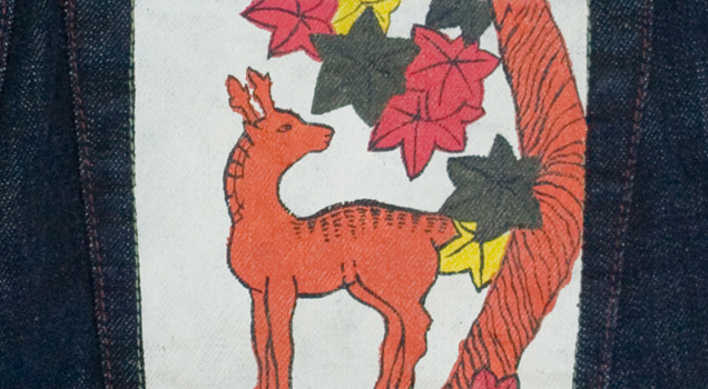 和柄ジーンズ 花札「10月 / 紅葉に鹿」