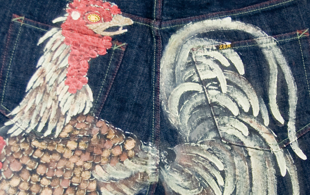 和柄ジーンズ「鶏」