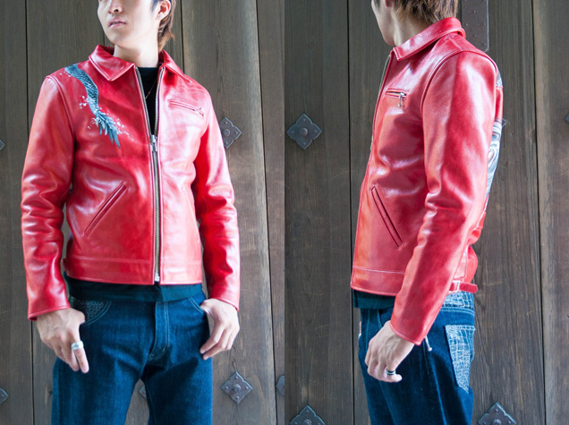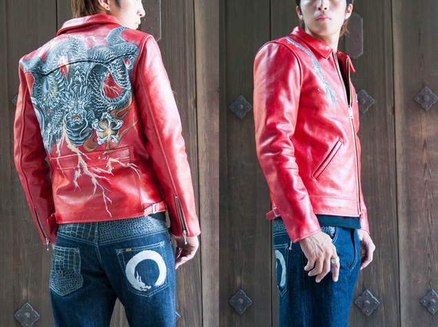 レザージャケット「稲妻龍」 / 赤