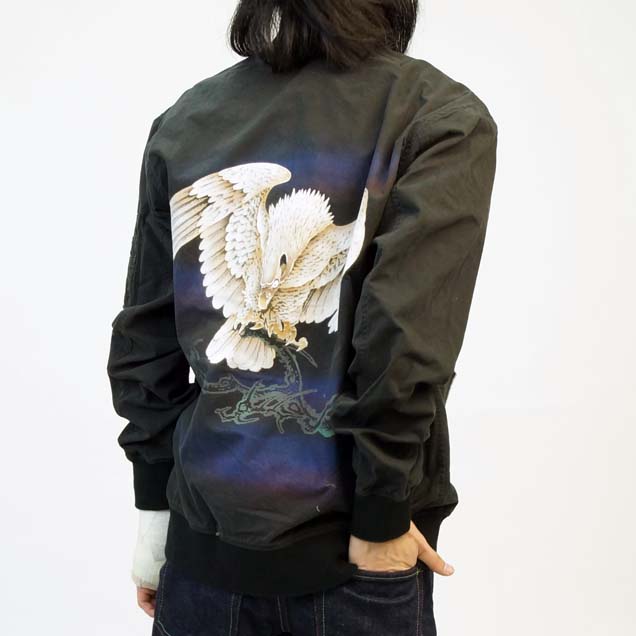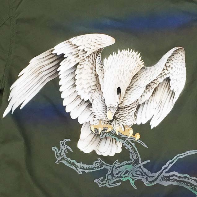 2017年の干支といえば酉年です。酉年といえば鶏ですが禅では同じ鳥類で初夢に見ると縁起のいいものの1つに選ばれる鷹をモチーフに選びました。鷹の色を白にし演技のいいイメージを演出。酉(トリ)は " 取り込む " に繋がるといわれ、そこから運気もお客様も取り込めるという意味で商売繁盛に繋がると言われています。長い期間、羽織れる万能ジャケットを着て運気を取り込んでみませんか【素材】 表地 綿75% ナイロン25%