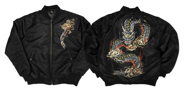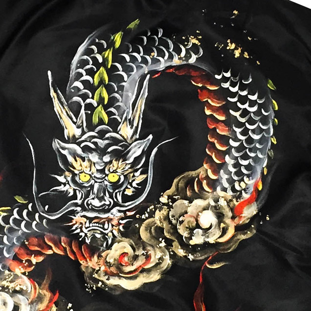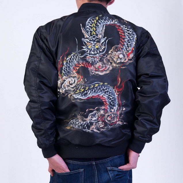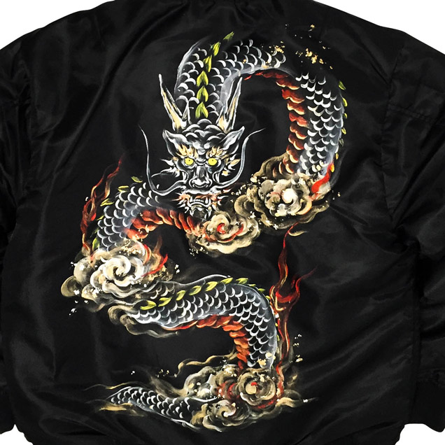 MA-1の背中に迫力ある龍を手描き