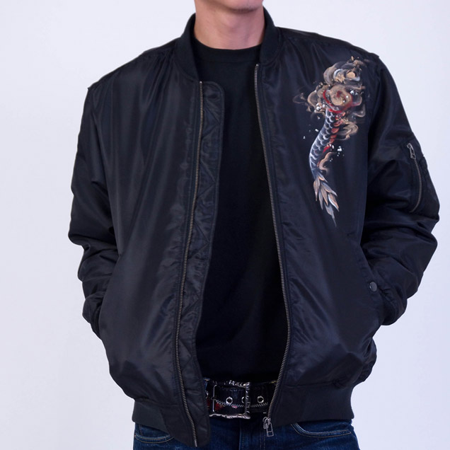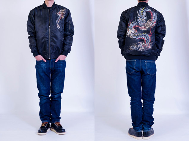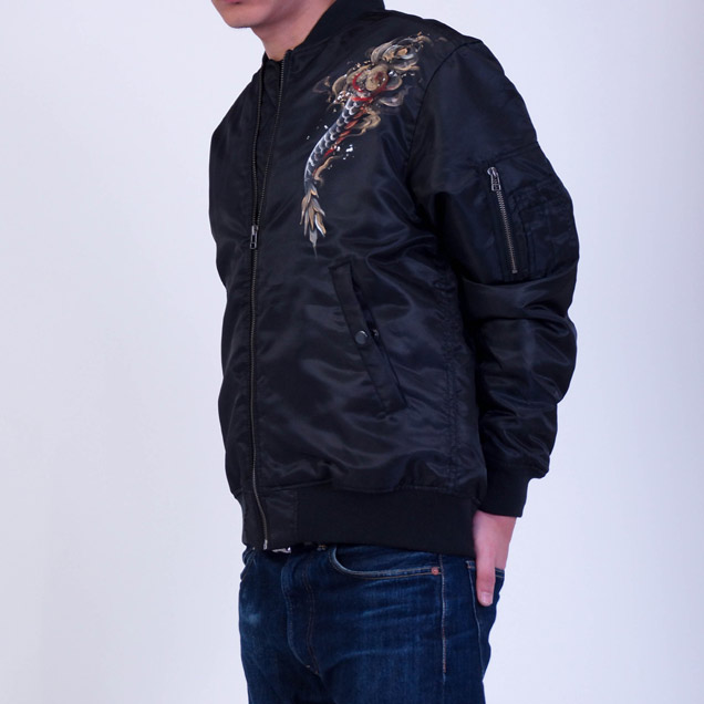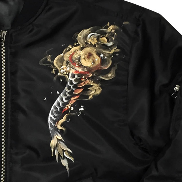 フライトジャケットの中で最もポピュラーでかつ最も息の長い存在がMA-1だと言えます。ファッションの世界でもファンが多く、今ではミリタリーの枠を飛び出したジャケットと言えるでしょう。そのMA-1に京都の絵師が新たな息を吹き込み更に進化させたのがこのジャケットです。