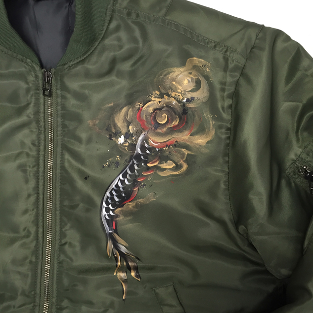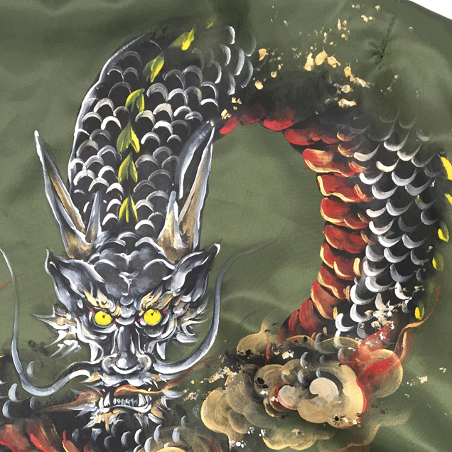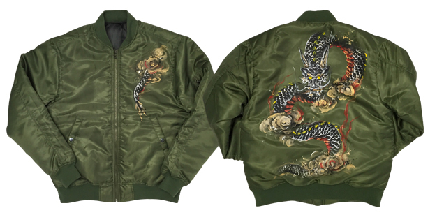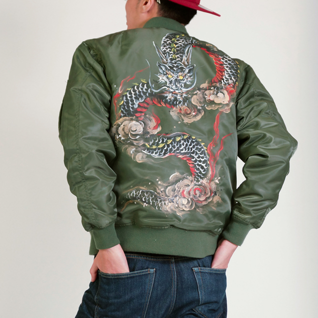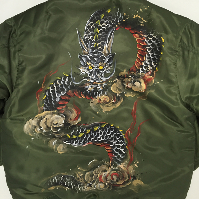 MA-1の背中に迫力ある龍を手描き