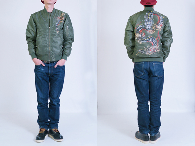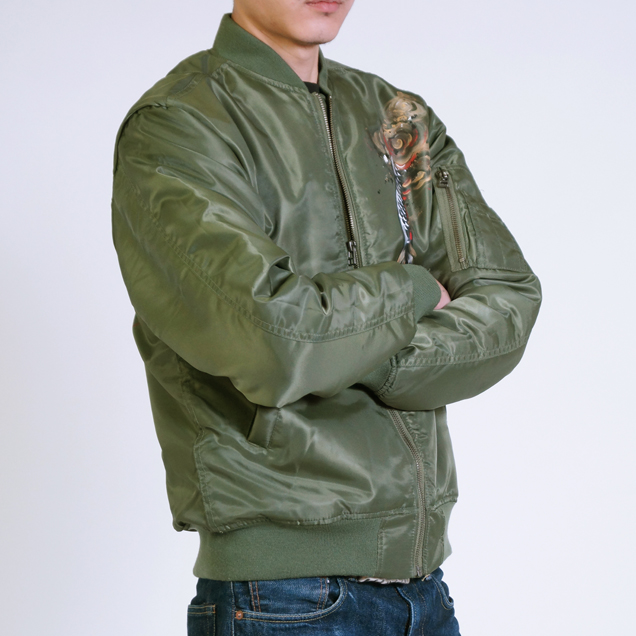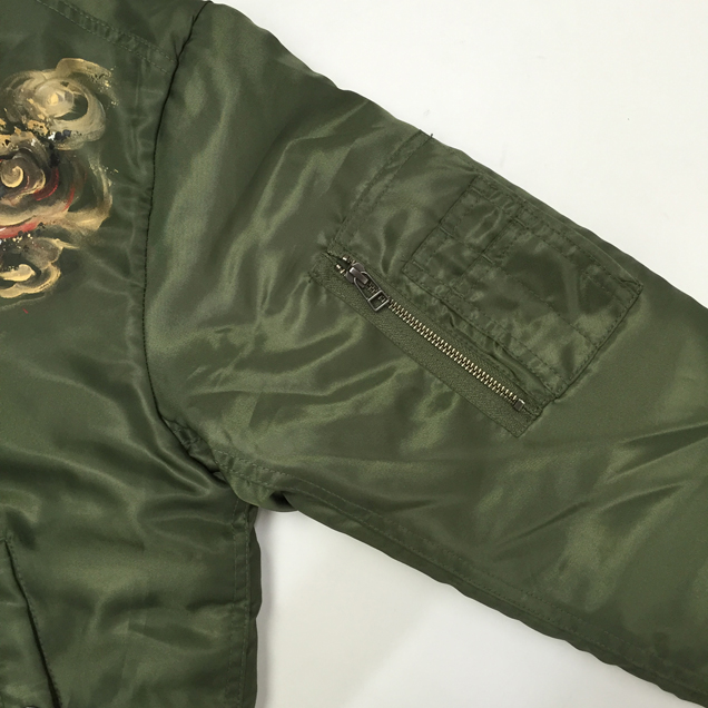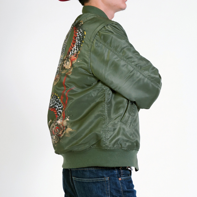 フライトジャケットの中で最もポピュラーでかつ最も息の長い存在がMA-1だと言えます。ファッションの世界でもファンが多く、今ではミリタリーの枠を飛び出したジャケットと言えるでしょう。そのMA-1に京都の絵師が新たな息を吹き込み更に進化させたのがこのジャケットです。