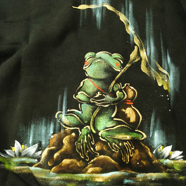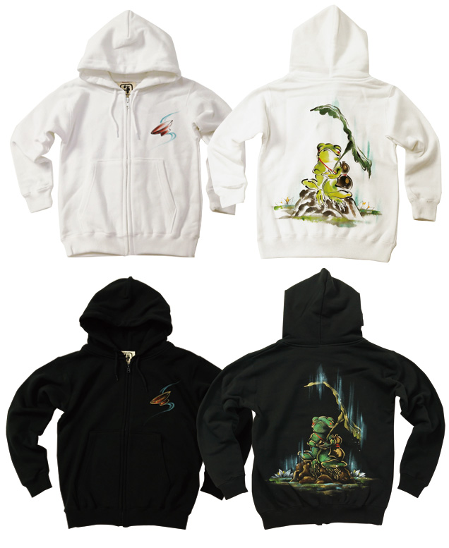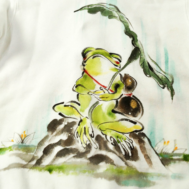 禅初のキッズパーカーの登場。今回は大人パーカーと同じ絵柄の雨蛙を描きました。
