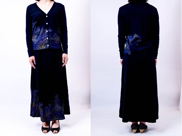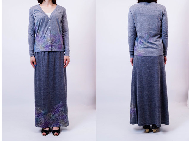 人気の七色櫻をマキシスカートにのせました。落ち着いた雰囲気が大人の女性にも受けそう。