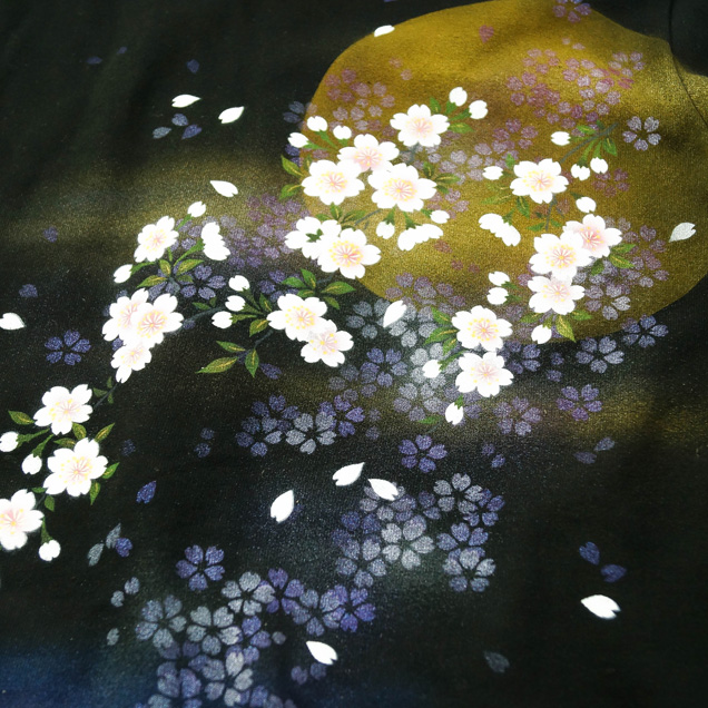 左見頃にはバック同様、櫻が中央に向かって枝垂れている姿を描きました。