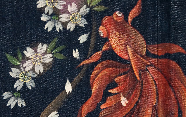 和柄ジーンズ「櫻金魚」