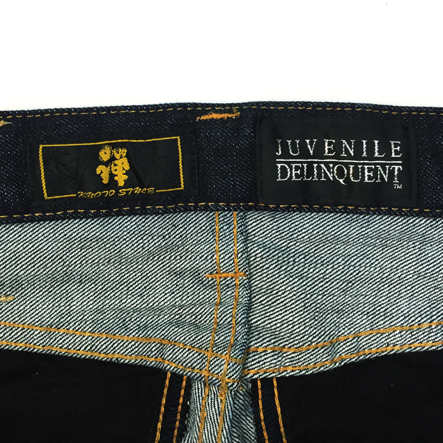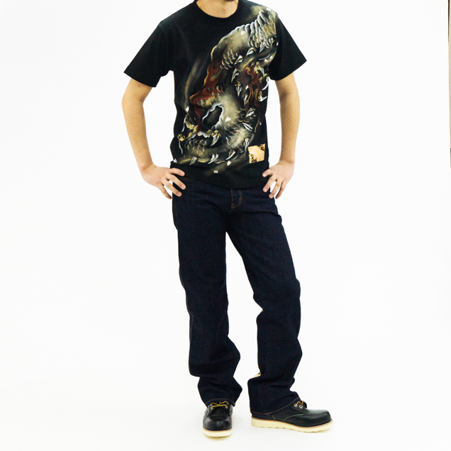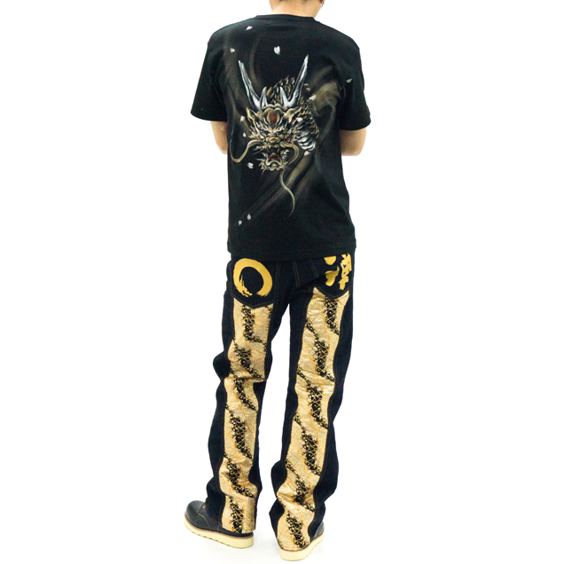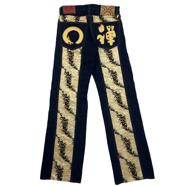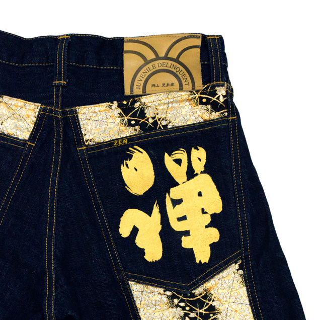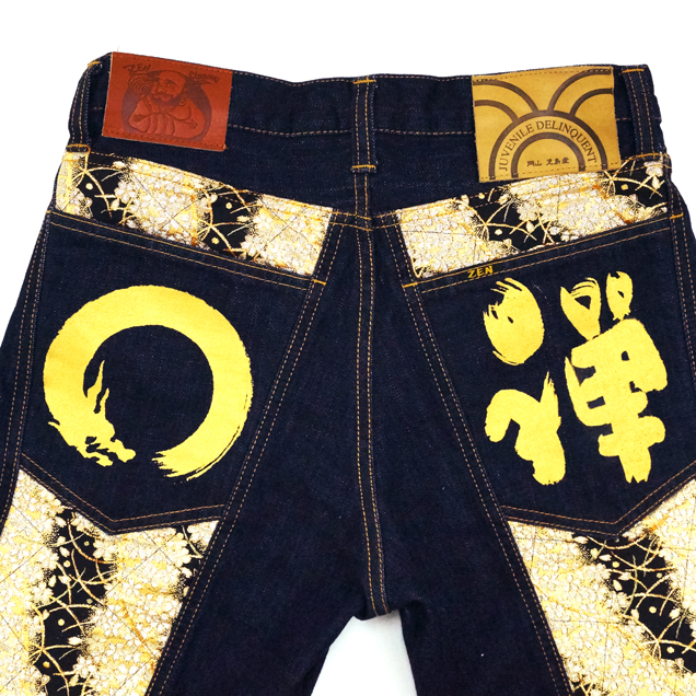 和柄ブランドで最も復活の要望の多い伝説のブランド【JD】が禅とのコラボで奇跡の復活を遂げます!デザインはJDの専売特許ともいえる帯地を身頃全体に装った豪華絢爛なモデルを採用。ジーンズのシルエットも当時のJDのシルエットをそのまま用いており、まさに完全復活版となっております(禅の手描きジーンズよりサイズが小さくなっております。ご購入の際はサイズ表をご確認下さい)夜櫻を連想させる金櫻の帯地が高級感を演出します。限定モデルは禅の専売特許とも言える手描きで龍を描きました。帯地と手描き、櫻と龍、まさに和柄好きにとっては至極の逸品に仕上がりました。これまでも、そしてこれからも手にする事が出来ないであろう幻のジーンズを是非、お試しください。