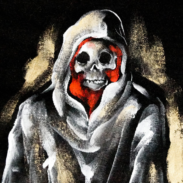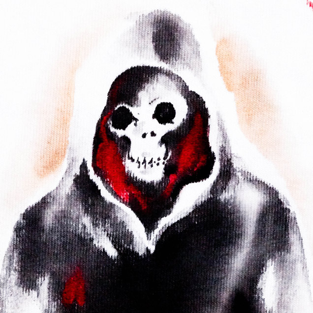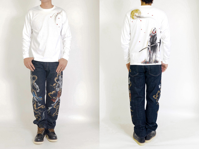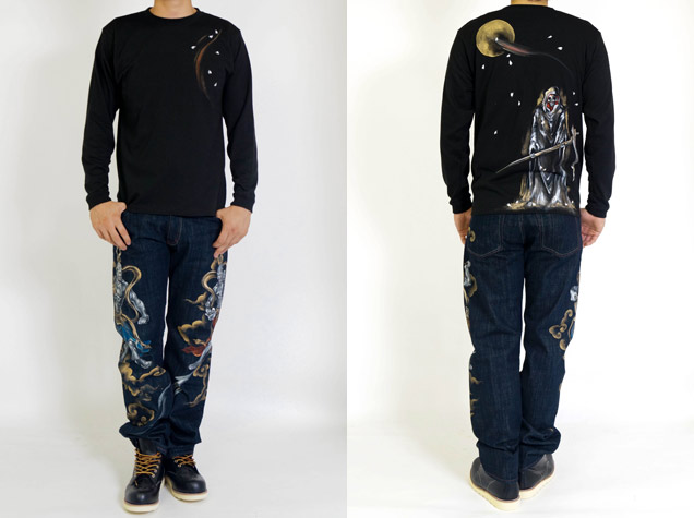 ジーンズやパーカーで人気の死神櫻が長袖Tシャツになって登場。巷に溢れているスカルではなく和柄ブランドらしい髑髏の世界観を演出。