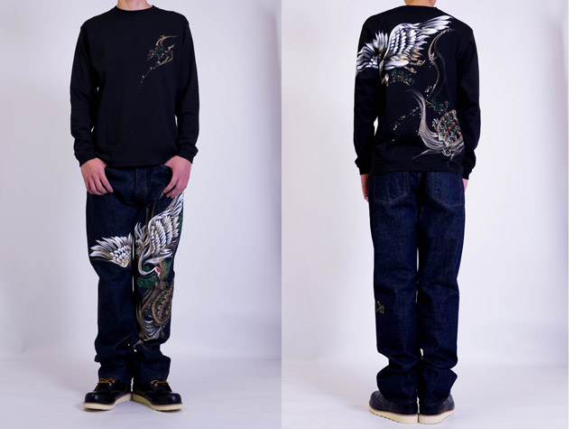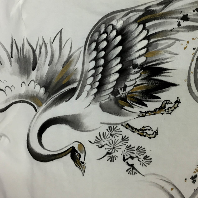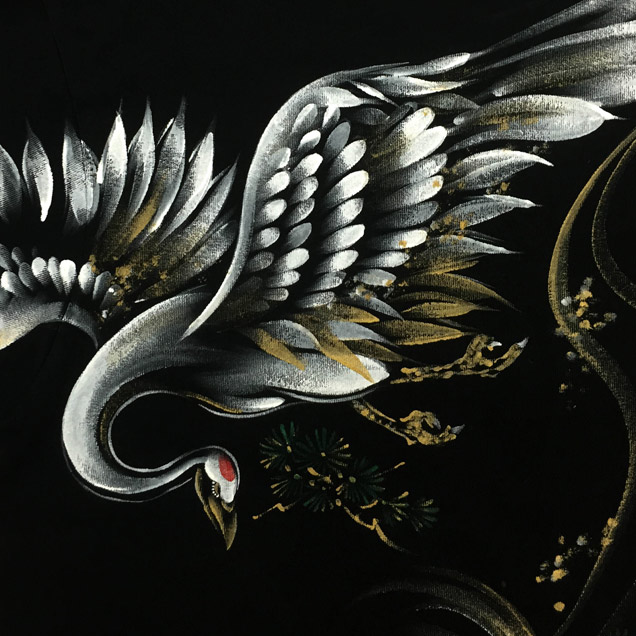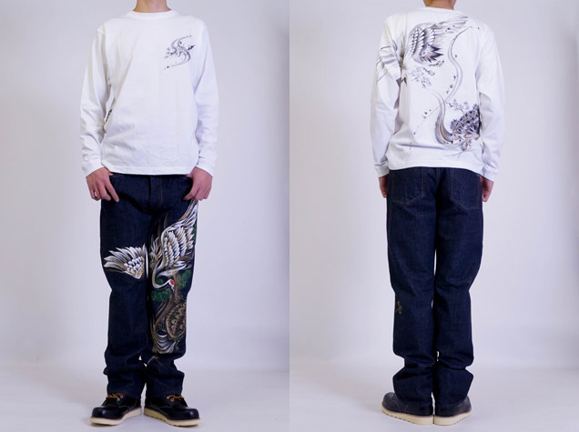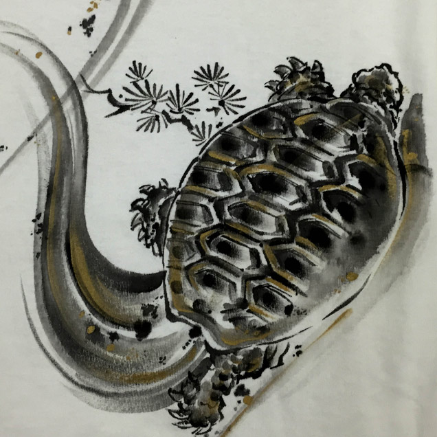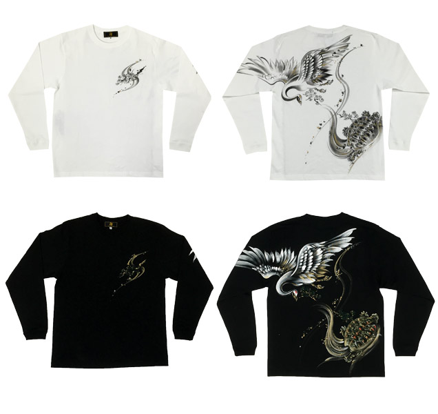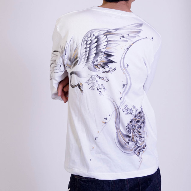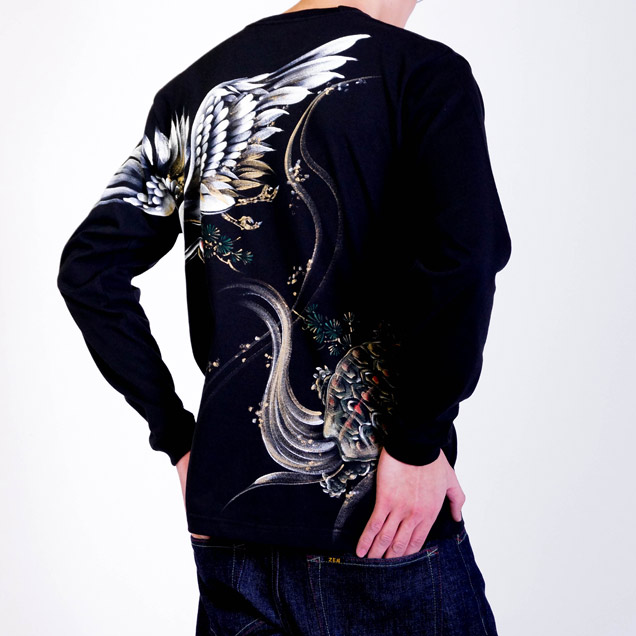 ジーンズ同様、鶴と亀を背中に描いた長袖Tシャツ。これまで禅ではあまり使われることのなかったモチーフなので