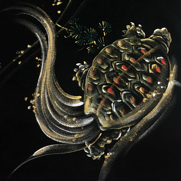 和柄長袖Tシャツ「鶴亀」
