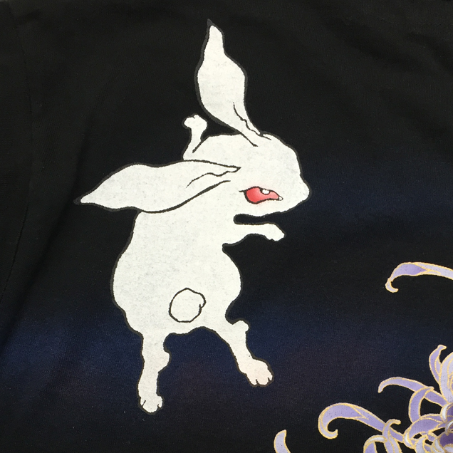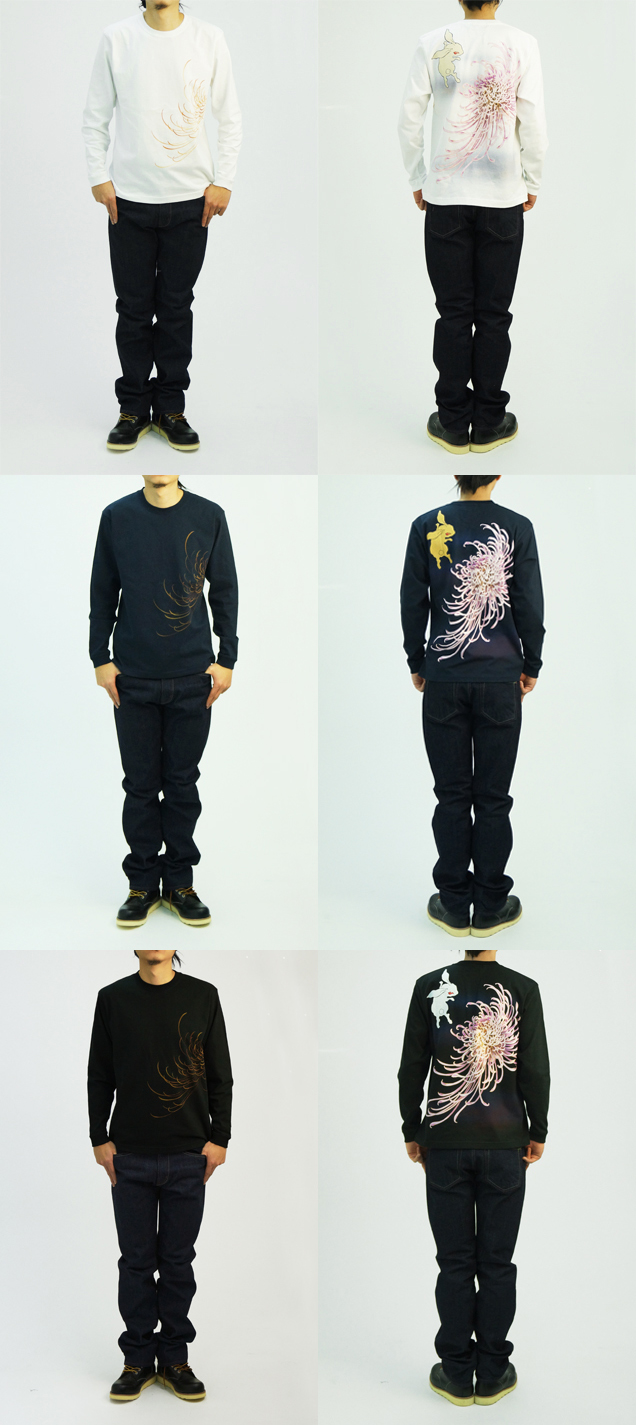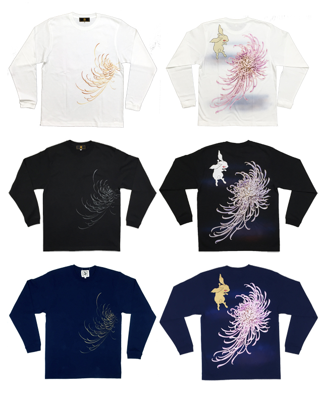 ちきりや×禅の長袖Tシャツ!大胆な乱菊と兎を背中に描いてインパクトの強い商品に仕上げました。兎を金色で表現した紺色のTシャツは88枚の限定品。気になる方はお早めに!【素材】 綿100%