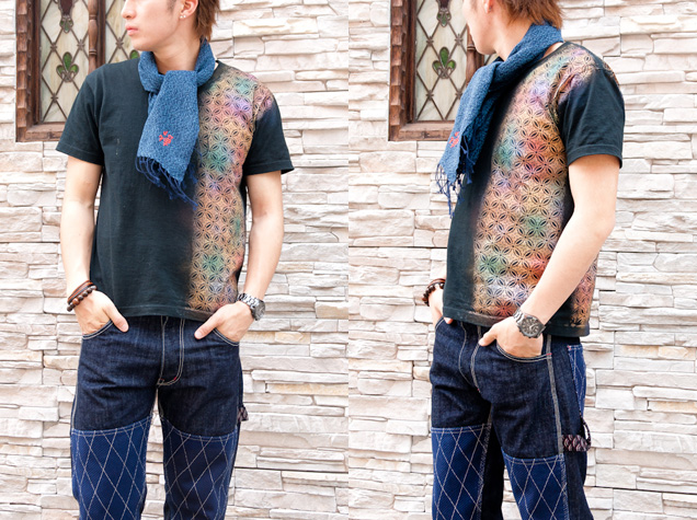 インディゴショートストール「禅ロゴ」