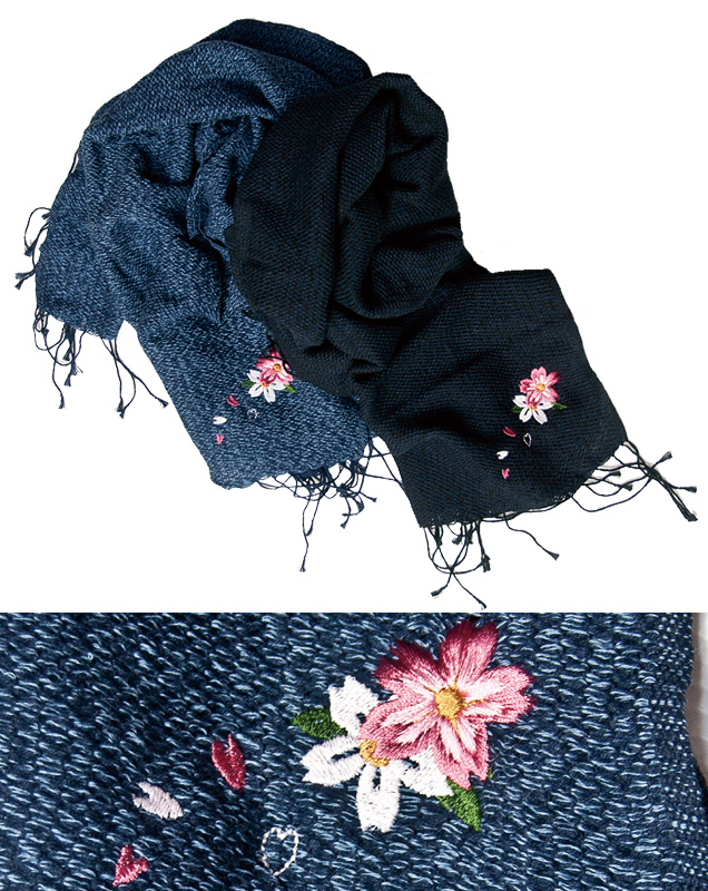 インディゴショートストール「櫻」