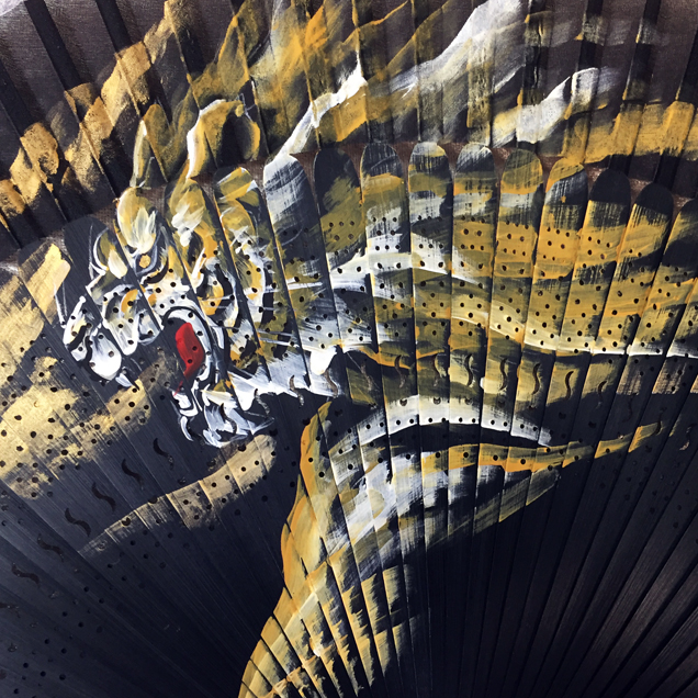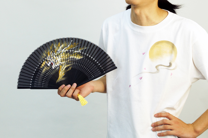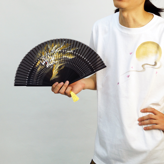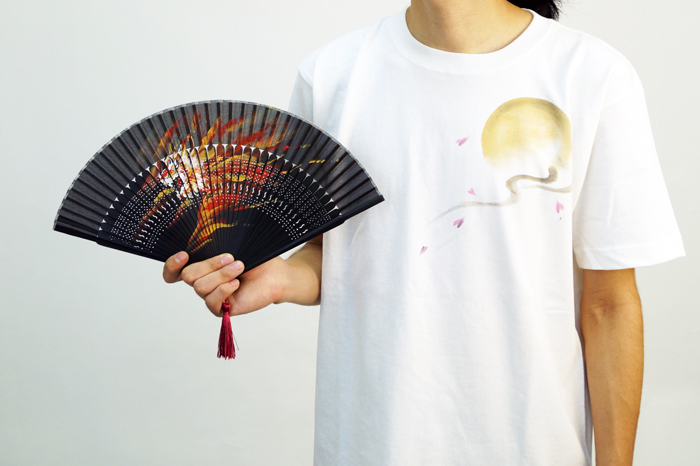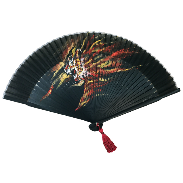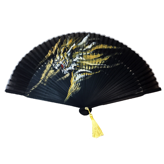禅では初アイテムの扇子が登場。扇子に大胆な虎を手描きしました。赤虎は30本の限定生産です。それぞれ虎の色に合わせた房がお洒落!手描きの虎と房が黒の扇子によく映えます。今年の夏は手描き扇子「前田慶次」で暑さを凌いでみませんか?他の前田慶次モデルの商品と一緒のお楽しみ下さい手描き半袖Tシャツ「前田慶次」