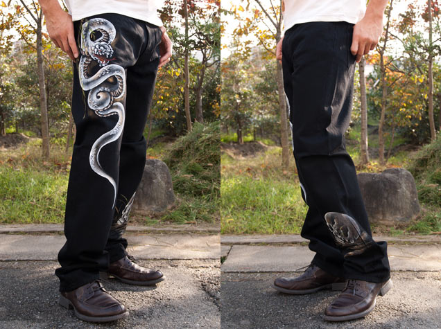 ブラックジーンズ「白蛇髑髏」