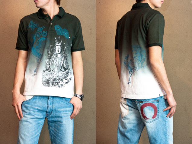 ぼかし染めポロシャツ「十一面観音」