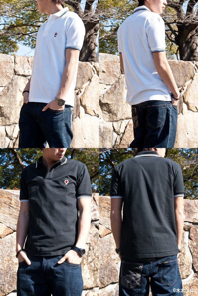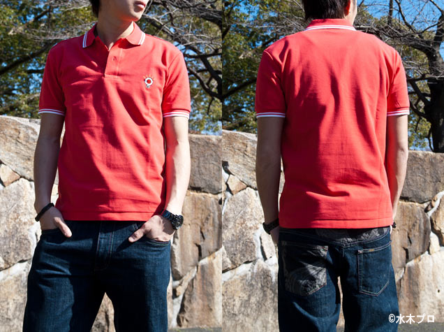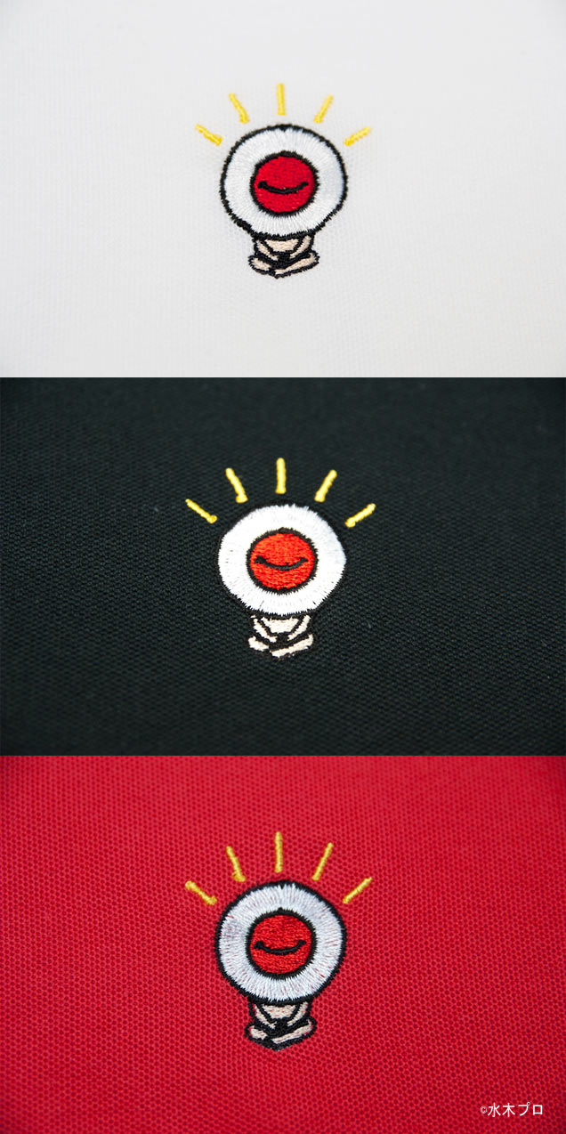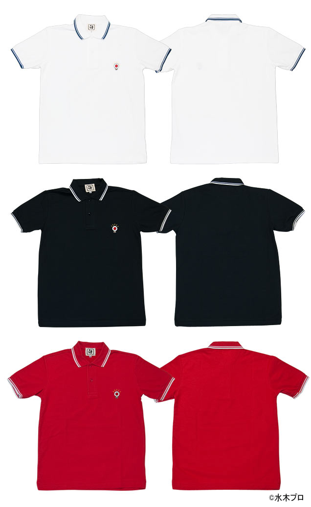 カラーは白/黒/そして限定50着の赤の3色と、サイズはレディースF/メンズM/L/LLの4サイズから選んでいただけます。ポロシャツの素材は鹿の子という素材で、通気性が良く丈夫な編み方ですのでスポーツにも向いています。