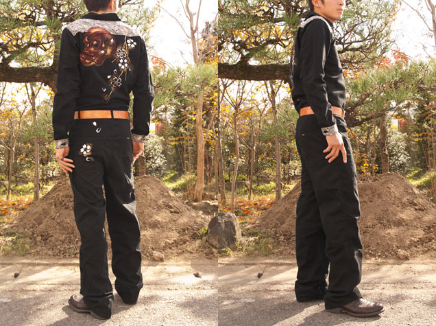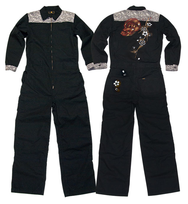 大阪アメ村でSHOPを展開しているレグルスさん別注で、櫻と髑髏を描いたツナギを発売!!さすがロックテイストの商品を多く取り扱っているレグルスさんだけあって、赤と金の派手な配色が目立つことうけあい!つなぎの生地は、綿100%の上質でしっかりした素材をセレクト。全体的にダボつかないシルエットで作業着のイメージを払拭し、肩と袖にあてがわれた菊のジャガード生地が和の雰囲気を演出しています。残り僅かのレアアイテムですよ。