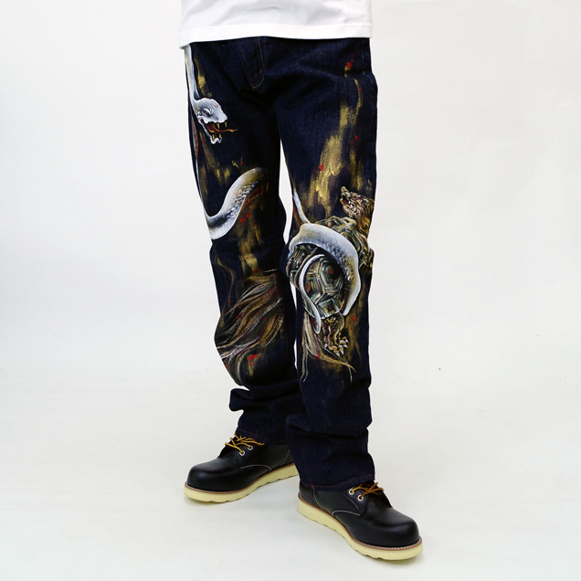 プレミアム手描き和柄ジーンズ「玄武」