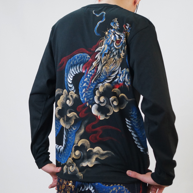 和柄長袖Tシャツ「青龍神」
