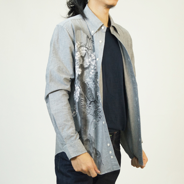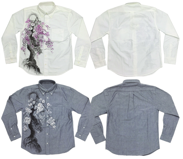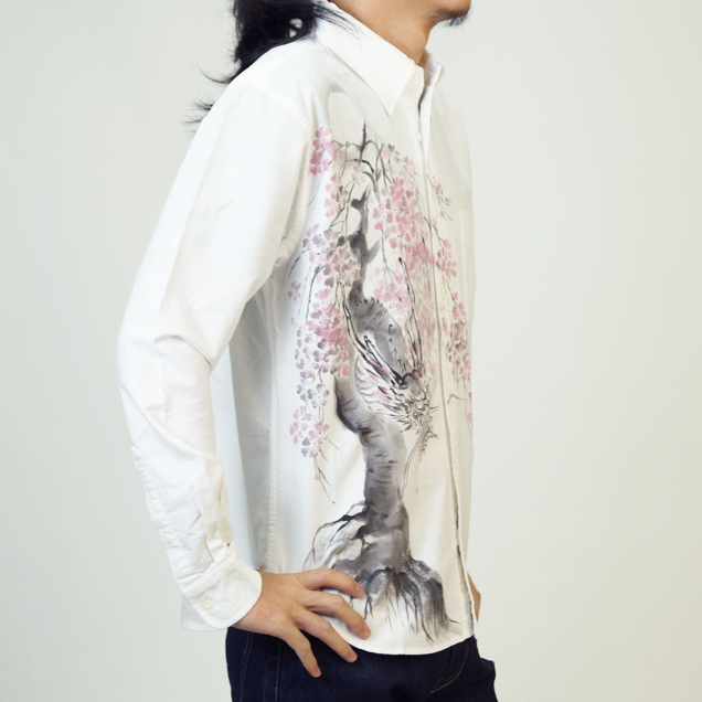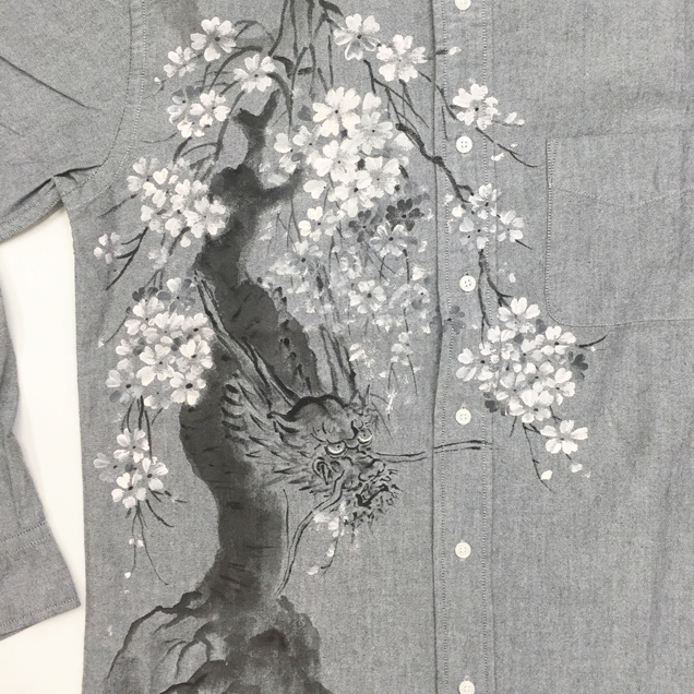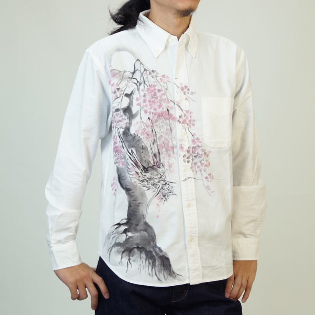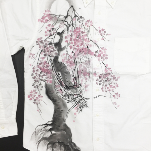 和柄長袖シャツ「龍木櫻」