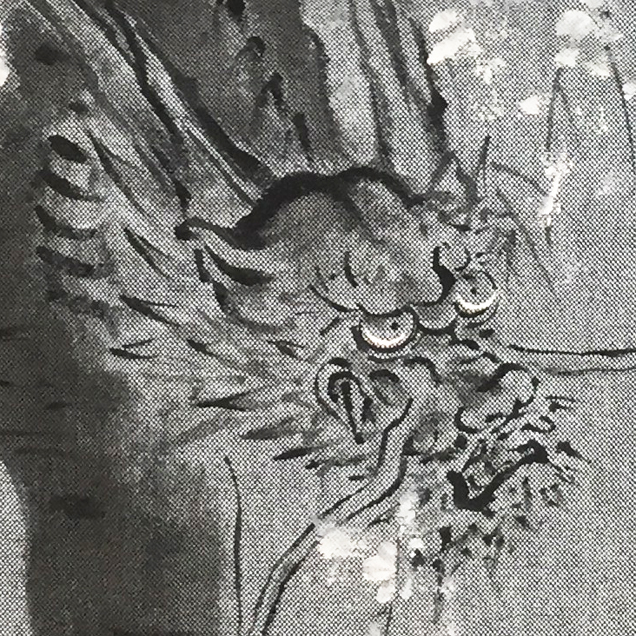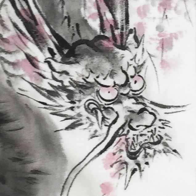 凛と立つ櫻の木が龍の顔となっているというだまし絵の様なモチーフを描きました。使用する色数を抑え、水墨画の様な上品な雰囲気に仕上げているのがポイントです。【素材】 綿100%