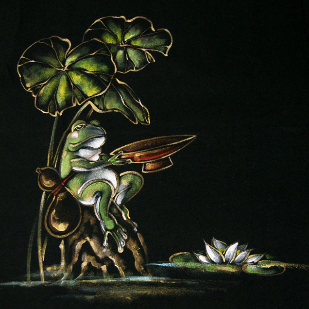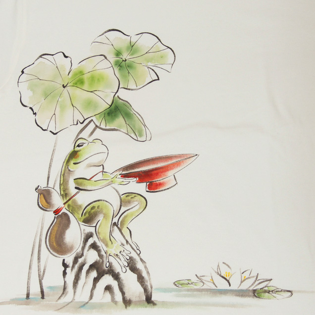 仕上がっています。水に浮かんだ蓮や酒を飲み顔を赤らめた蛙など