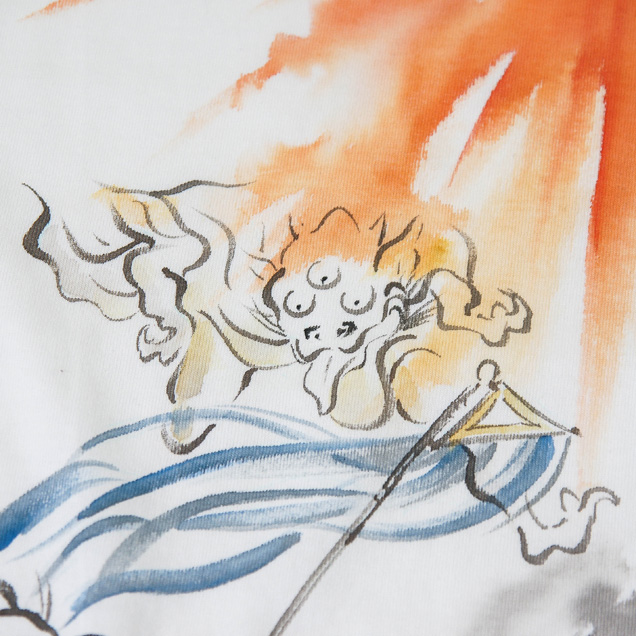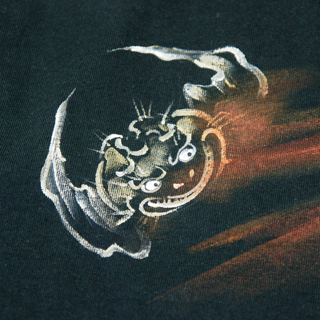 そのため、このTシャツは朝日が昇り妖怪たちが消えていく様を表現しました!