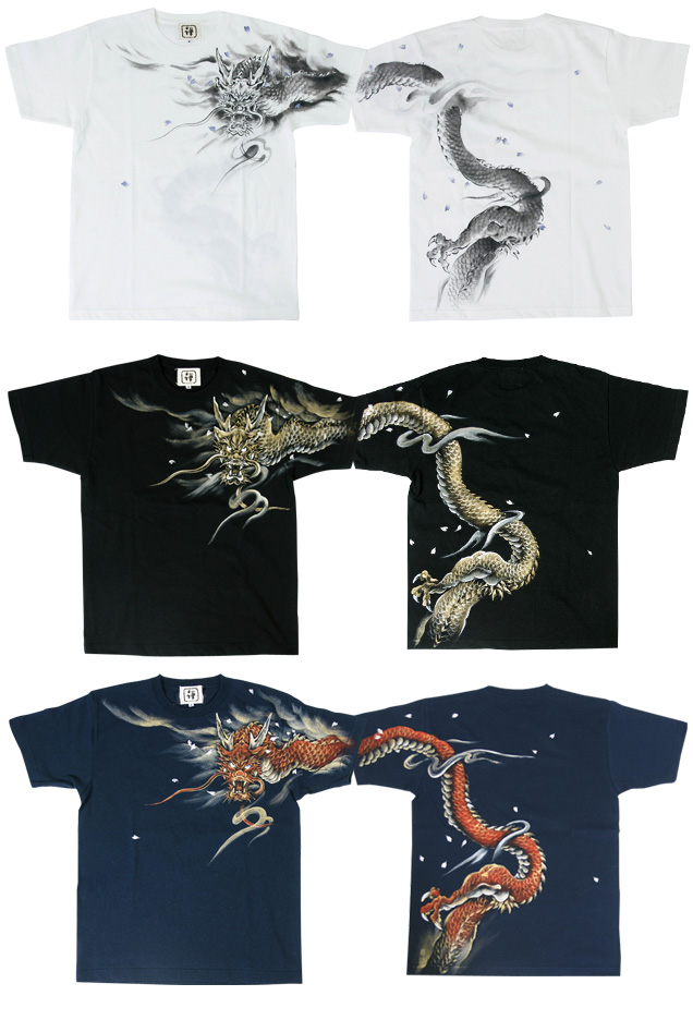 Tシャツの色ごとに龍の色目を変えているので各色それぞれが独自の世界観を演出