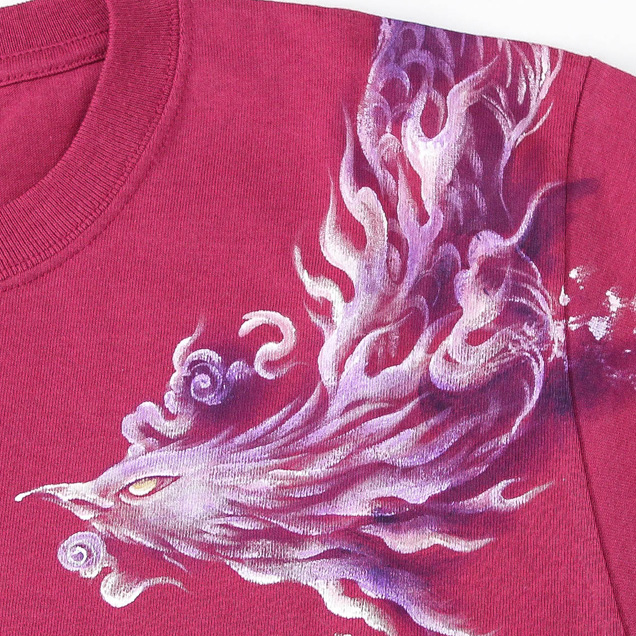 ボディの色目に白ではなくワインカラーを採用し、白熱に燃える火鳥を手描きしました。