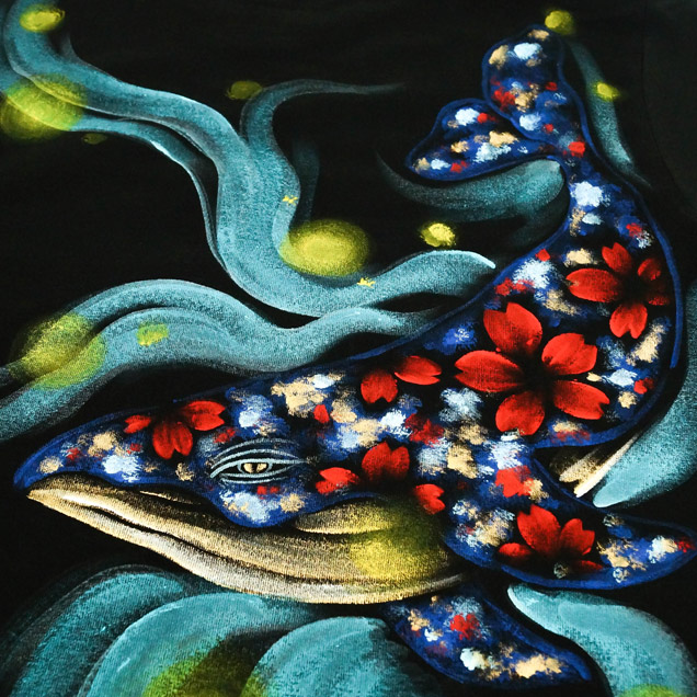 鯨の体に桜模様を入れ、和柄好きの心をくすぐる事を忘れない、