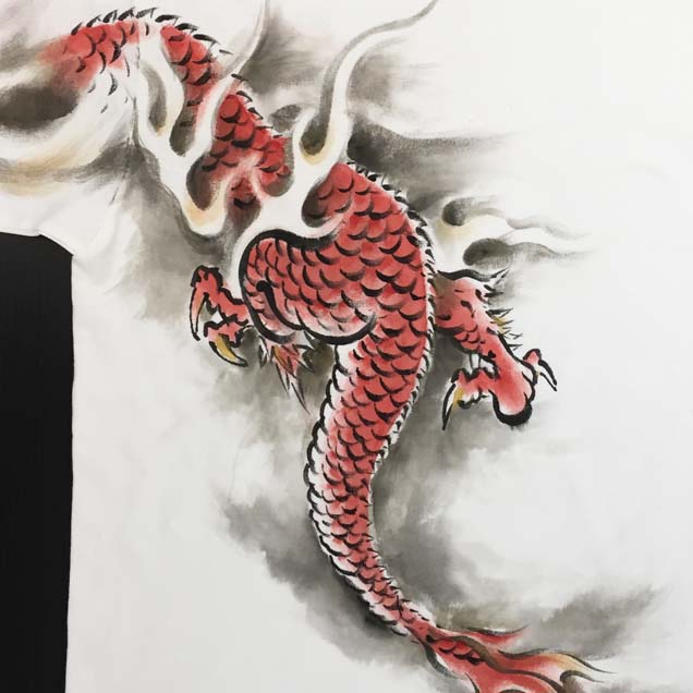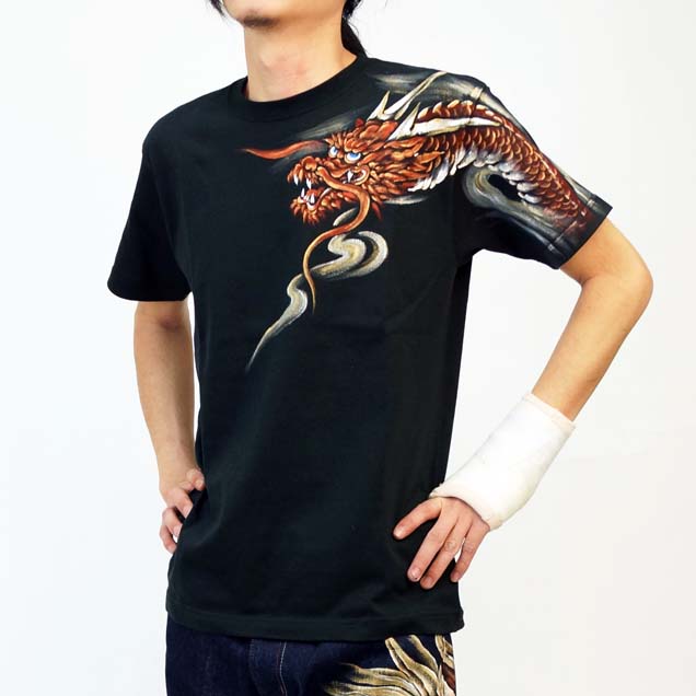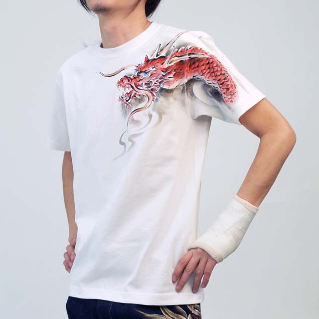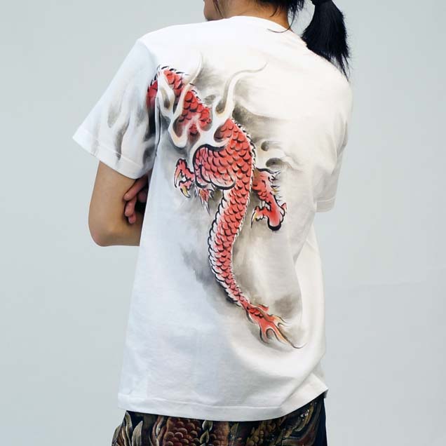 和柄半袖Tシャツ「赤龍」