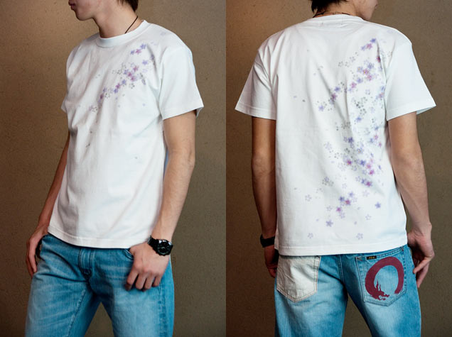 はんなりとした色使いが特徴のシンプルな櫻柄Tシャツが登場!京都らしい絵柄に仕上がりました。白は優しくふわっとした描写で、黒ははっきりとした奥行きのある柄。それぞれ印象の違うTシャツですので、色違いで揃えても良い商品となりました。