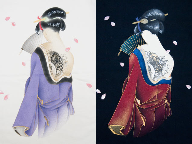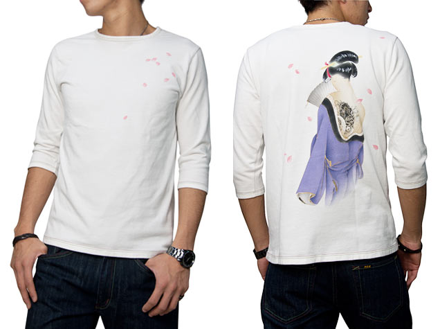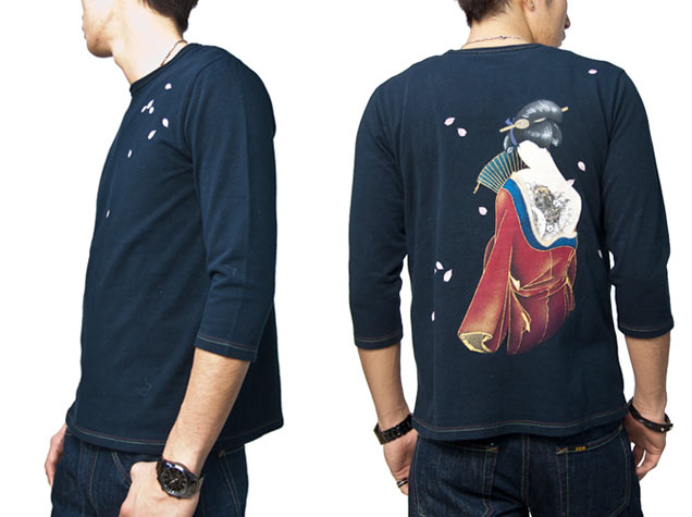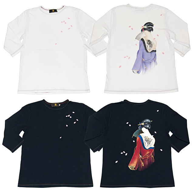 手描きジーンズでリリースした「恋櫻」を、七分Tにアレンジ。艶やかな着物の女性の後姿、そのはだけた背中には鯉の彫り物が入っております。京女の美しさを粋に表現した、京都らしいデザインに仕上がりました。洗練された色使いにもご注目いただきたい!!