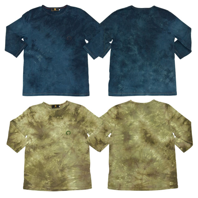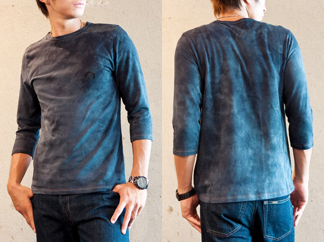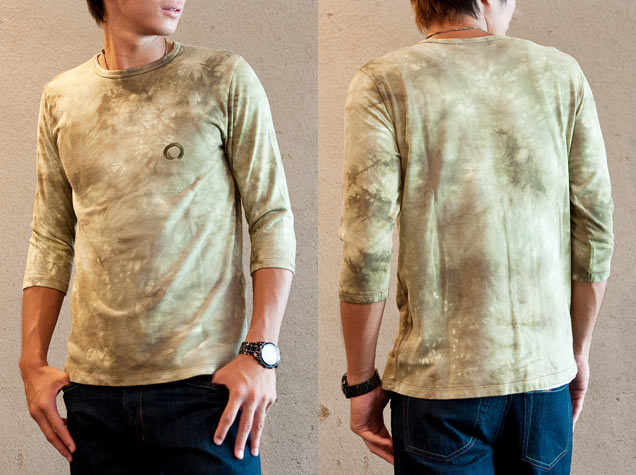 国産の七分袖Tシャツにムラ染めを施したシンプルなトップス。初秋ということもあり、派手過ぎない落ち着いた2色展開です。