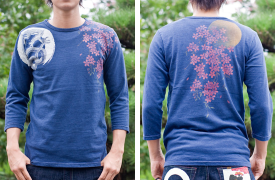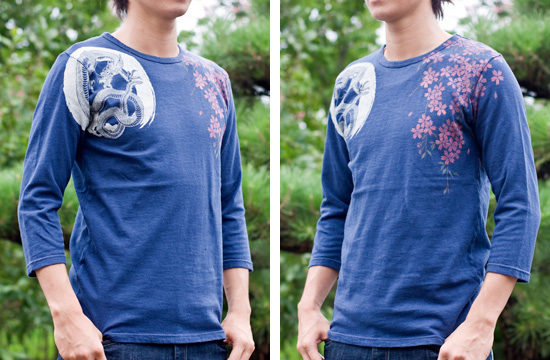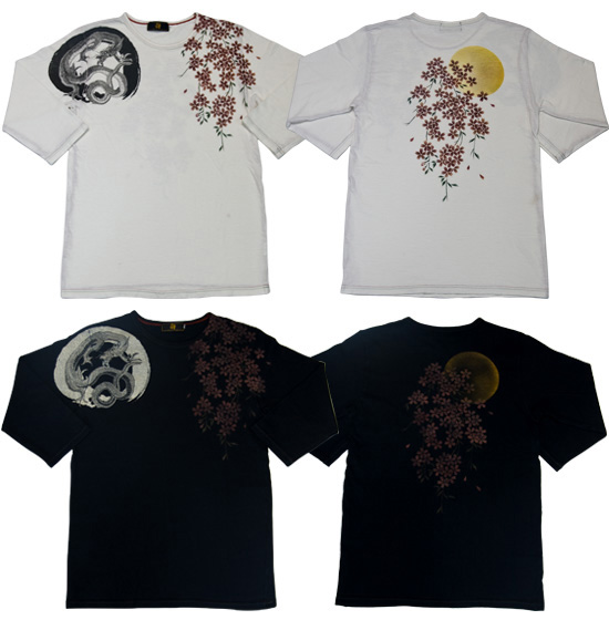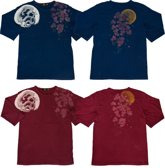 既存モデルで好評だった、手染めTシャツの染め技法とプリントを駆使し、定番になりつつある四神を、デザインを新たに七分袖としてリリース!!