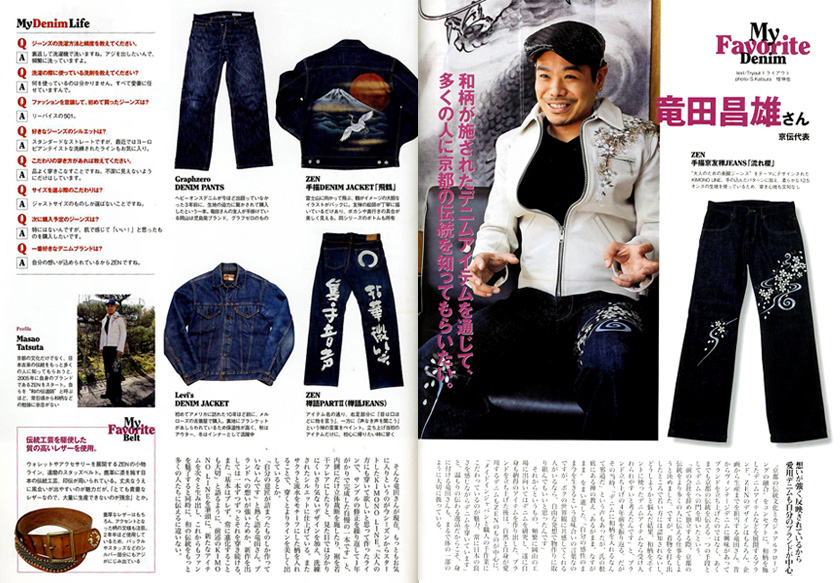 ジーンズと同じく小豆色とわさび色をステッチに用いて、わびさびを表現した、禅らしい一品です。