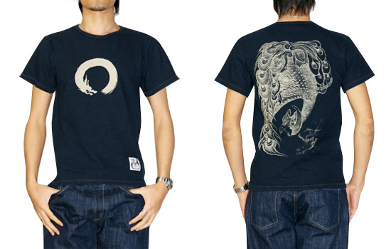 手描きジーンズで人気の四神がTシャツとなって登場!独特の絵柄は京都の現役着物絵師が描き下ろした、希少性抜群の四神となっており、ボディとなるTシャツも国産ムラ糸を使用した後染めTシャツなので、生地自体に表情があり、また着心地も抜群。